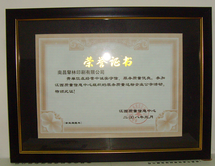 熱烈祝賀南昌擎林印刷有限公司評(píng)為首屆南昌市誠(chéng)信單位!
